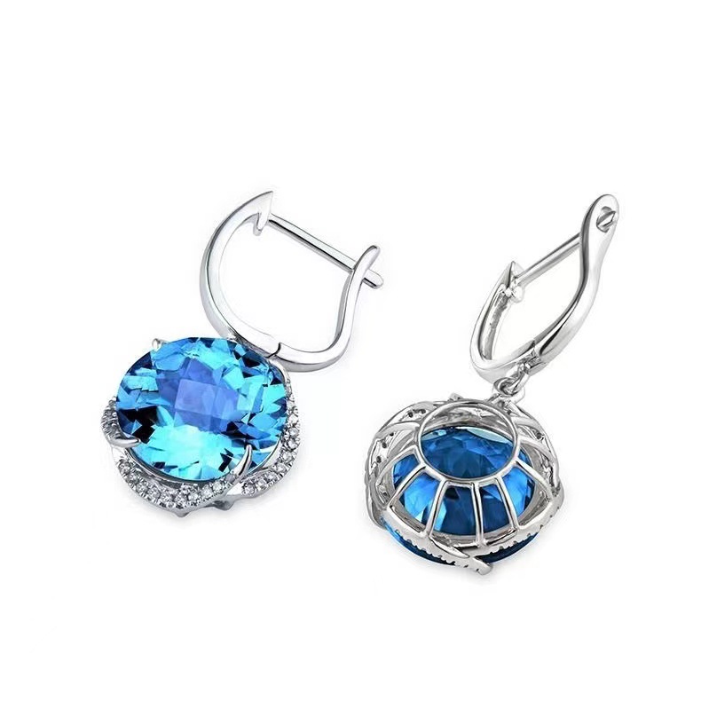 925 Sterling Silver Fashion Sky Blue Topaz Gem Three-piece Jewelry