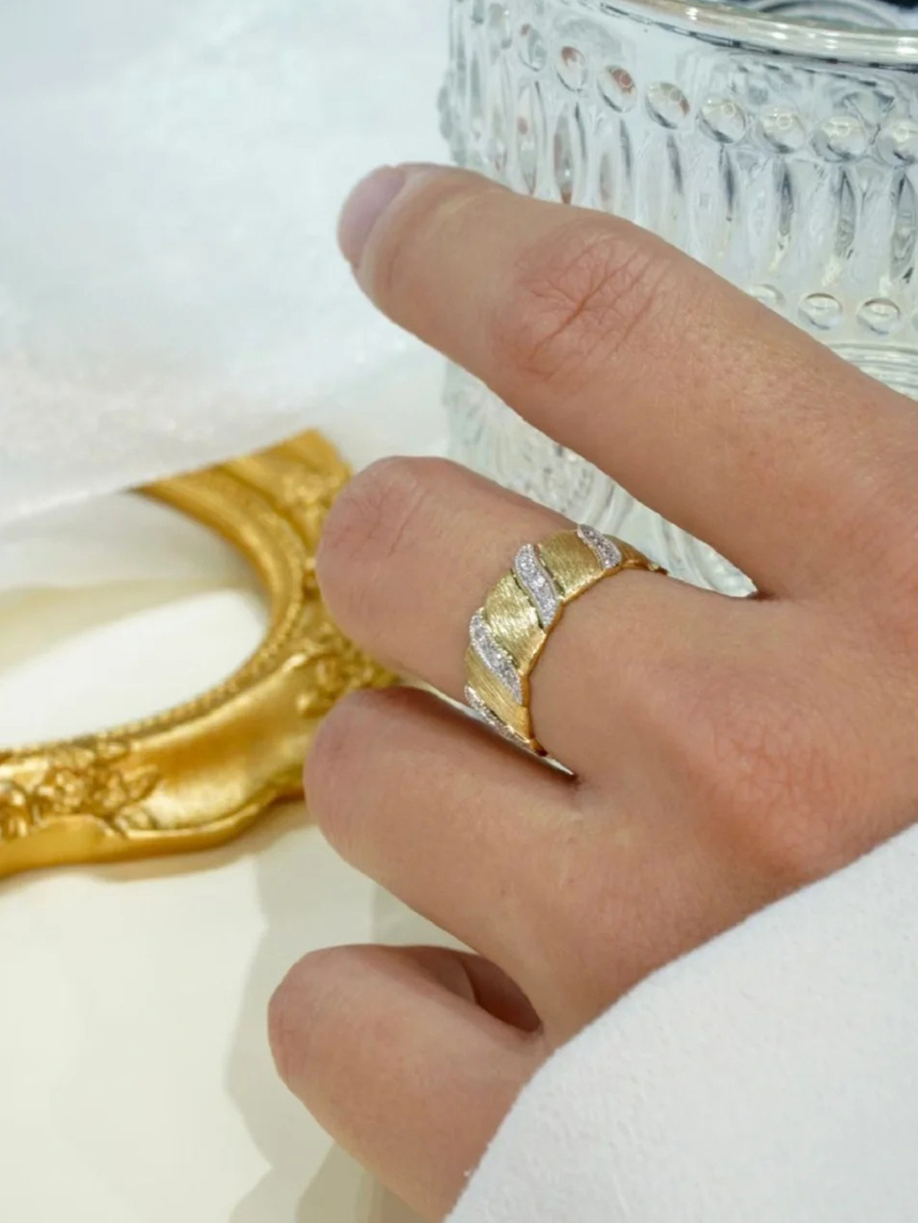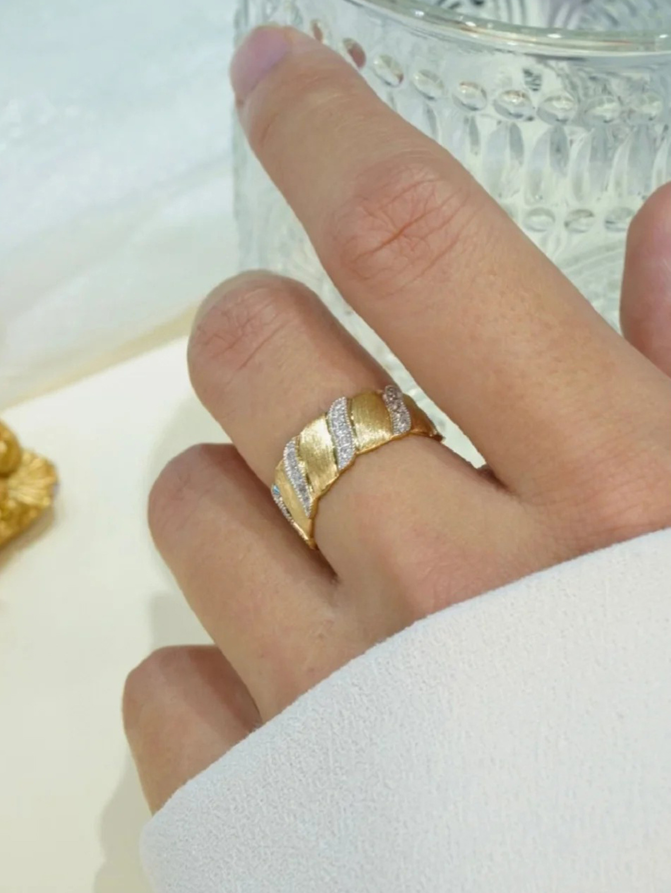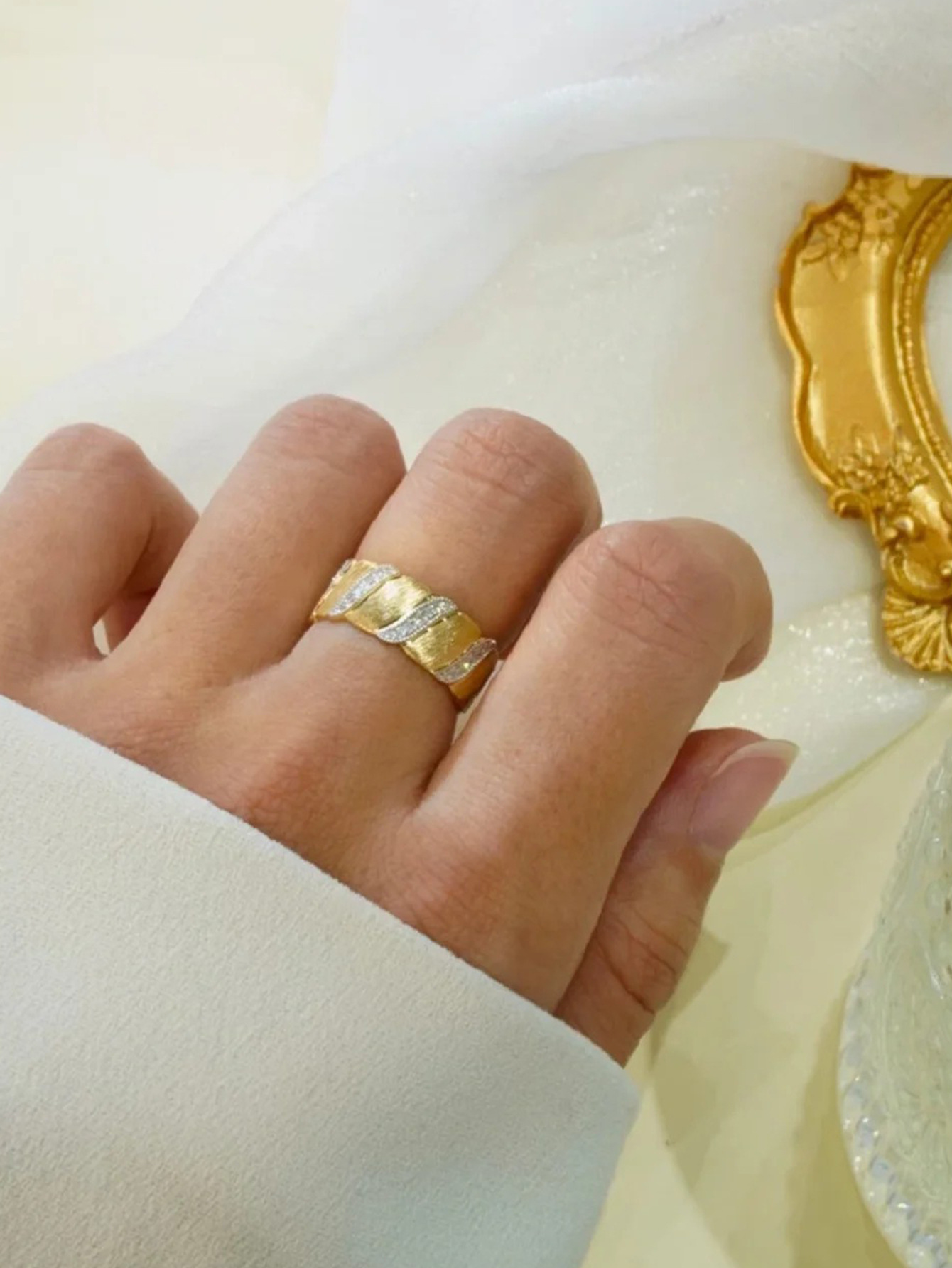 S925 Sterling Silver Brushed Vintage Ring For Women Gold-plated Ring Little Finger Ring